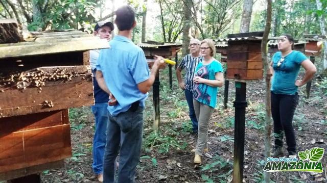 Pesquisadores do Campus da UFMT de Sinop estiveram em Alta Floresta no último fim de semana buscando informações para desenvolver um projeto sobre meliponíneos, ou abelhas sem ferrão, como são popularmente conhecidas. O grupo visitou a propriedade de Edson Francesto, que é consultor responsável pela manutenção e reprodução das abelhas no Meliponário Municipal, implantado na Chácara Esteio. A implantação do meliponário faz parte do fortalecimento da cadeia produtiva do mel foi contemplado no Projeto Olhos D’ Água da Amazônia e iniciou em 2014. A visita foi acompanhada pelo coordenador executivo do Prodam, José Alesando Rodrigues, e a Secretária Municipal de Desenvolvimento, Elsa Lopes.